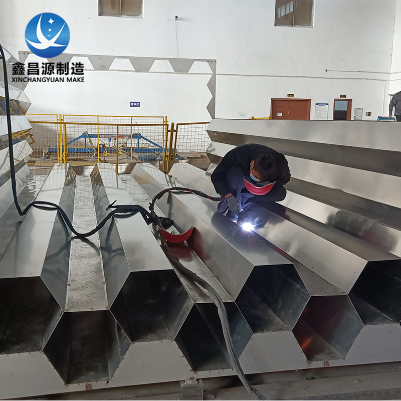 無錫99香蕉视频設備製造有限公司生產的2205香蕉视频APP黄色陽極管采用中間斷焊外部滿焊的焊接工藝。中間斷焊保證產品在物流運輸和吊裝作業過程中不脫焊、不變形。外部滿焊使設備在作業中不會有煙氣或灰塵從縫隙逃逸,使設備運行處理效果大大提升。其承重法蘭更是采用雙麵滿焊,和上密封法蘭間用加強筋板進行連接,保證設備的穩定性,不會因為鋼材變形造成設備下沉。承重法蘭厚度和加強筋板的密度可根據客戶圖紙進行調整,滿足客戶的使用習慣和應對不同工況。另我廠在不斷的研發調整下,現出廠的2205香蕉视频APP黄色陽極模塊單孔對角線誤差可控製在±3mm以內,確保客戶項目運行穩定、不引弧,達到預定設計參數正常運行。